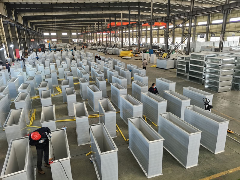 公司引進了多臺先進全自動化生產線(八線、六線、五線、三線、二線)、激光切割、角鐵自動焊接、數控機床、鎂質板雕刻機、覆板機等機械化生產設備。在生產制作中不僅提高了生產效率,同時提升了風管的質量,通過對風管壓筋和連接工藝的改變使風管具有強度高、質量好、更節能、更健康、更安全、更耐用、更便捷、更美觀等特點。